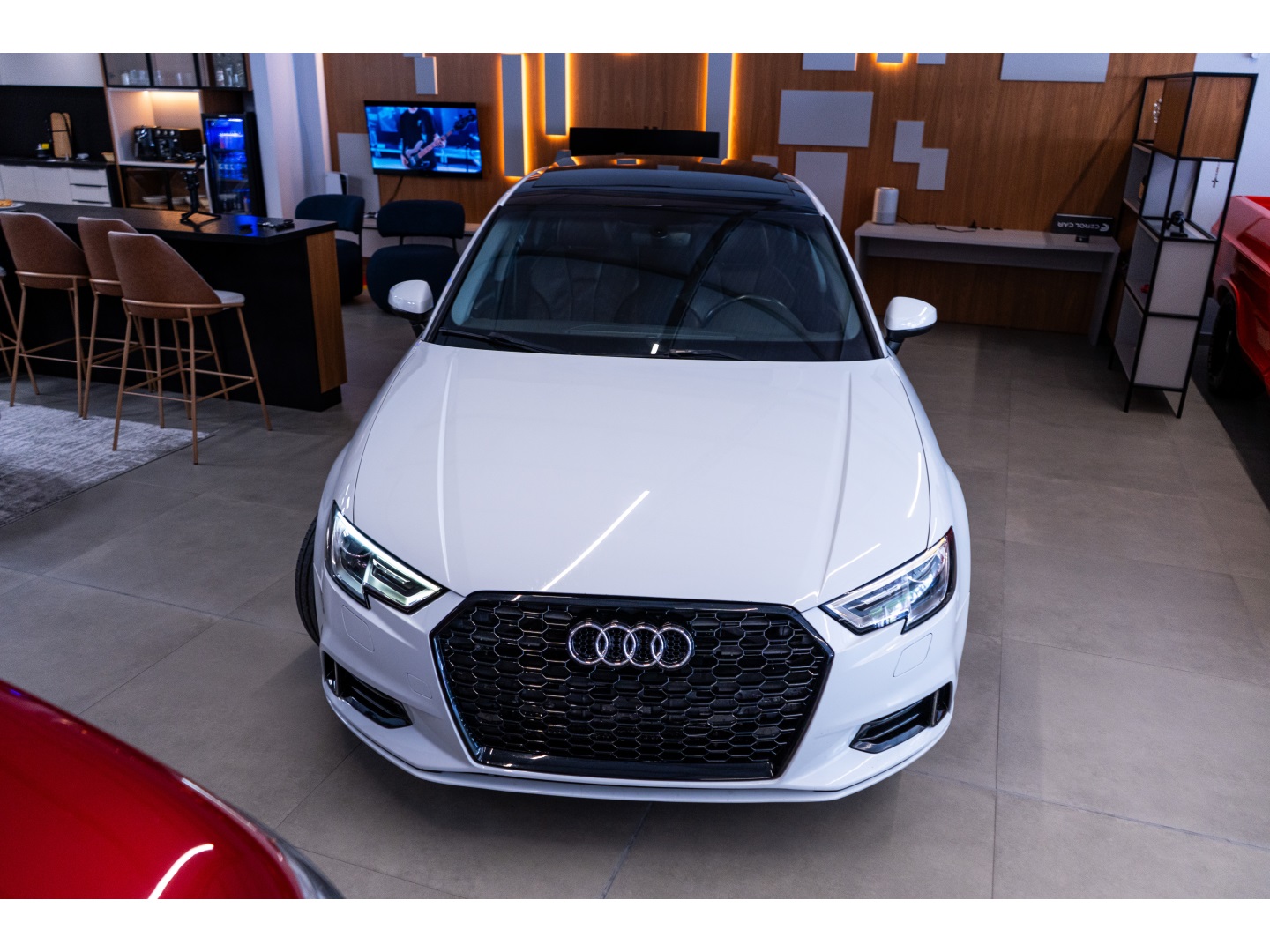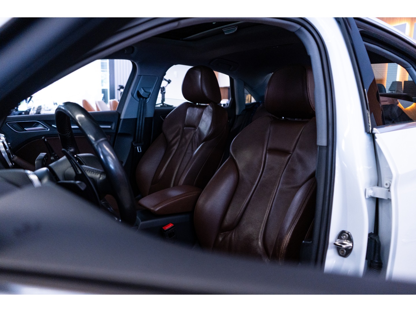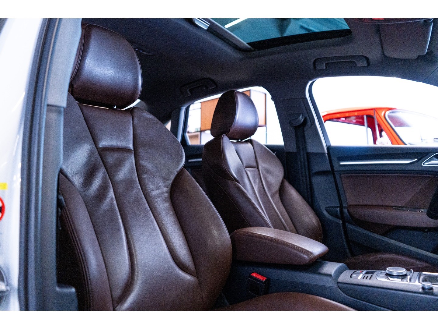 Audi A3 2.0, carro confortável para o dia a dia cor branca, interna café