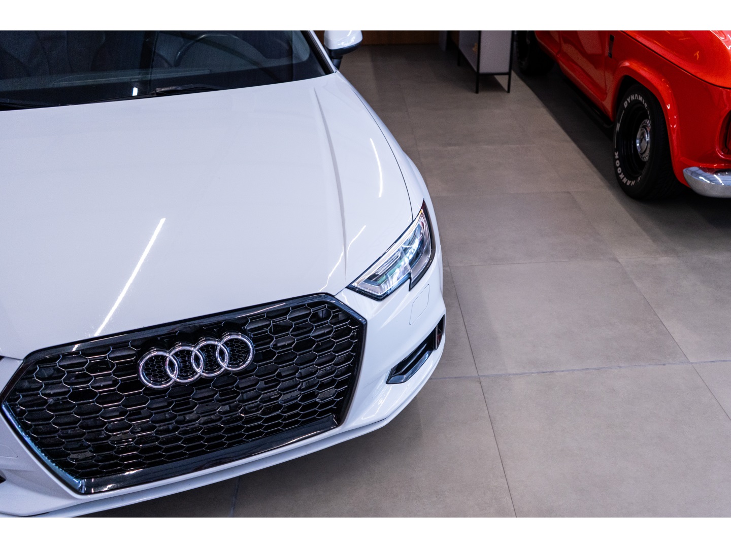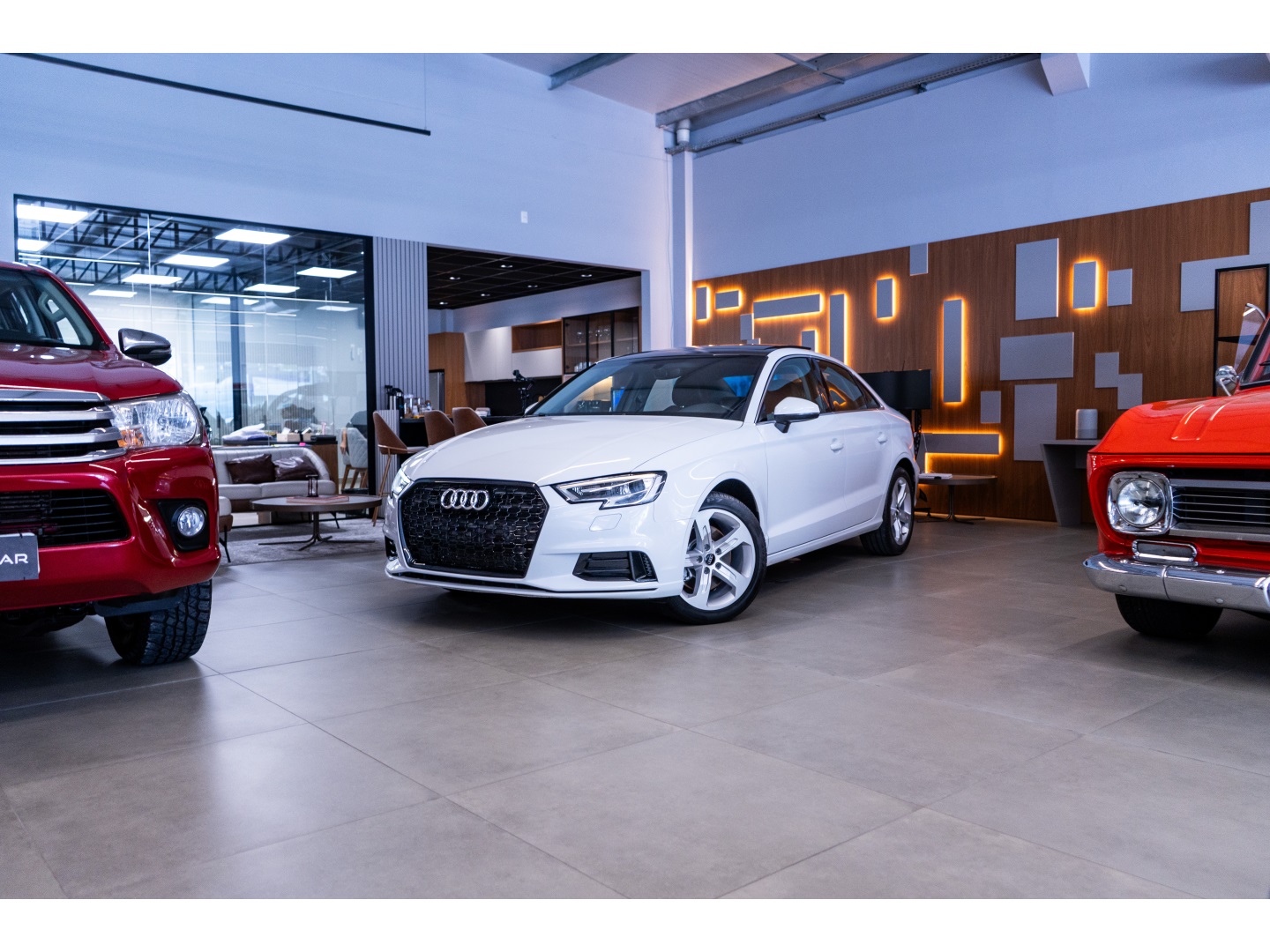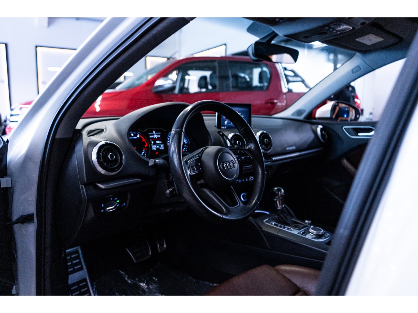 Audi A3 2.0, carro confortável para o dia a dia cor branca, interna café